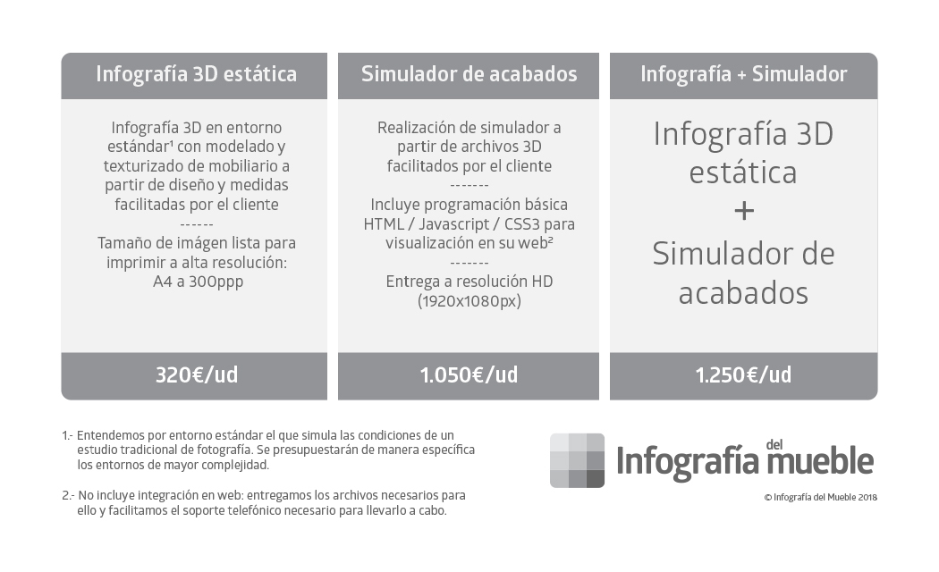 Realizamos imágenes de mobiliario en 3D a partir de sus especificaciones, con un cuidado seguimiento del proceso para garantizar resultados optimos en el tiempo previsto.